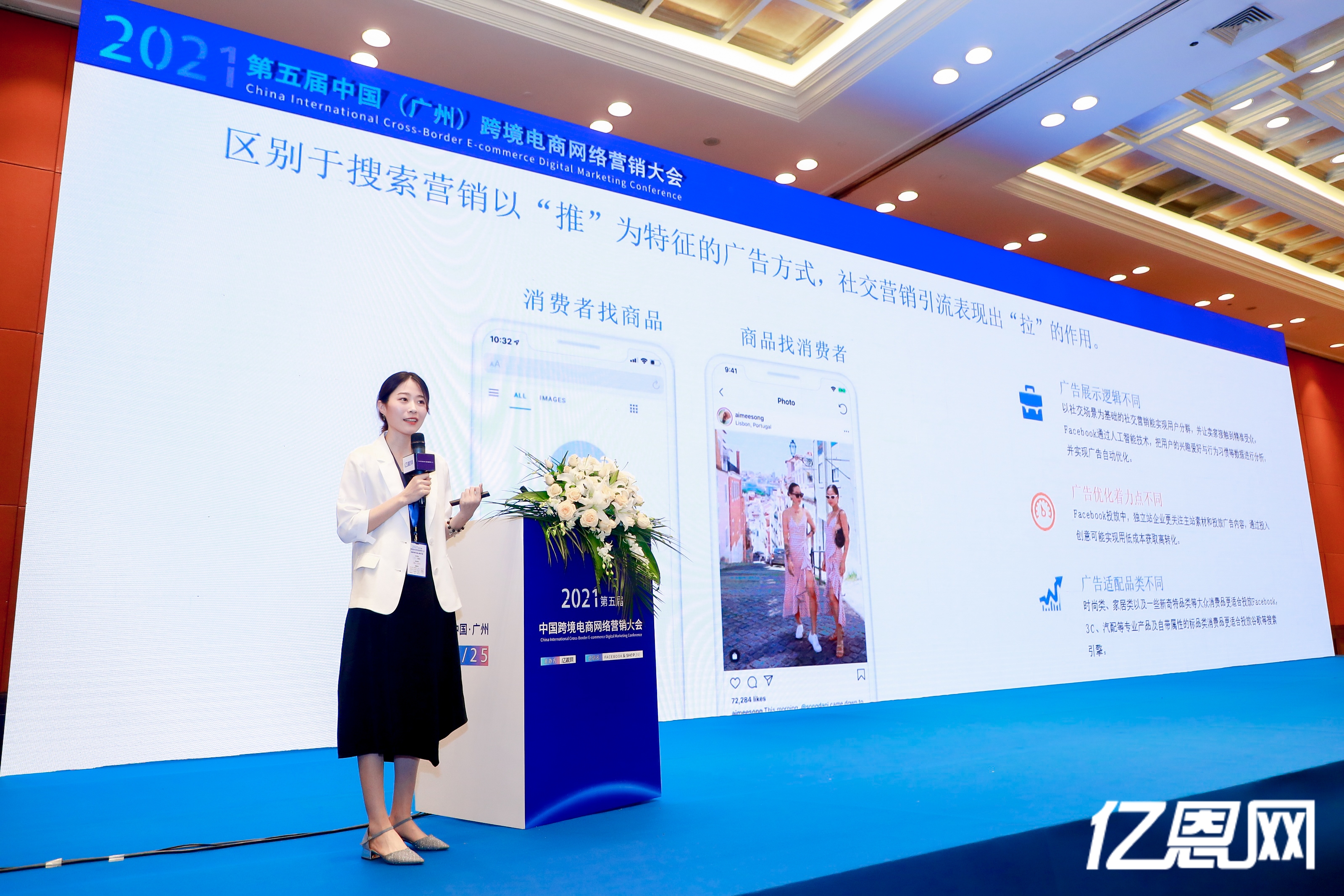 大会分成亚马逊及独立站与海外营销两个会场,Facebook新业务发展副总经理陈震在独立站与海外营销会场做了“利用海外社交媒体大数据精准布局蓝海品类”专题分享。
