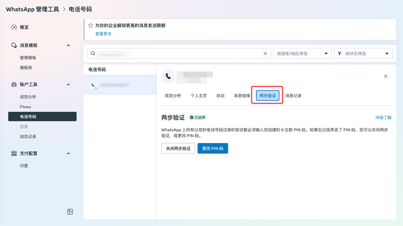 您还可以在BM-WhatsApp管理中继续绑定并管理更多手机号码,点击即可:查看具体方法