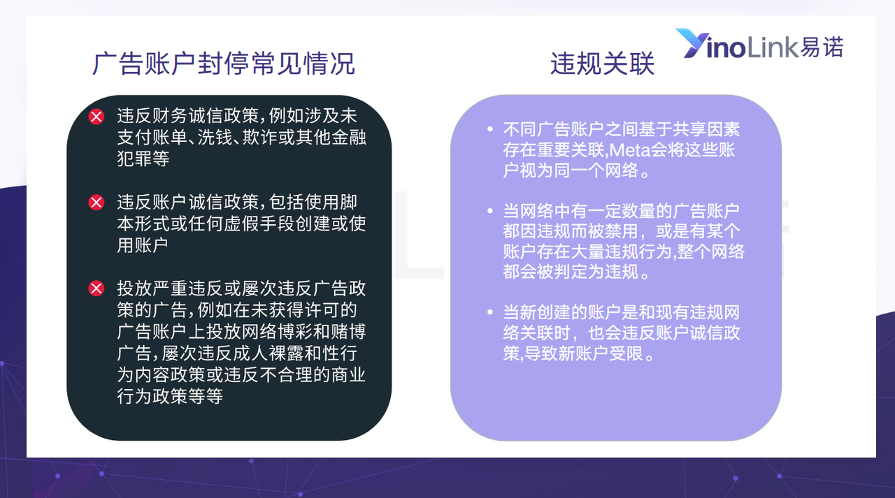 YinoLink易诺上周针对跨境电商卖家做了场广告政策类的直播,直播中不仅有常见的资产受限原因以及申诉办法,还有旺季大促期间广告主更容易遇到的资产问题详解以及维持资产稳定,顺利度过大促期间的资产管理办法。如果想要查看完整版直播,可以进入YinoLink周5出海视频号查看直播回放噢~