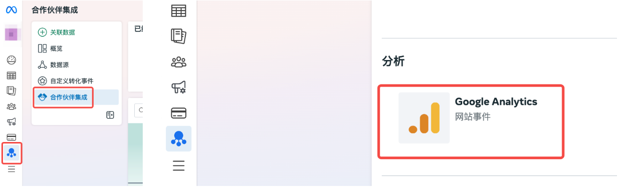 1、打开事件管理工具:在左侧导航菜单中,点击 “合作伙伴集成” 页面。但广告主需要注意的是,如果您没有看到此选项,可能是因为该账户尚未获得访问权限。